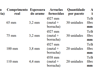Uso principal: fixação de telhas de fibrocimento de 4 mm de espessura